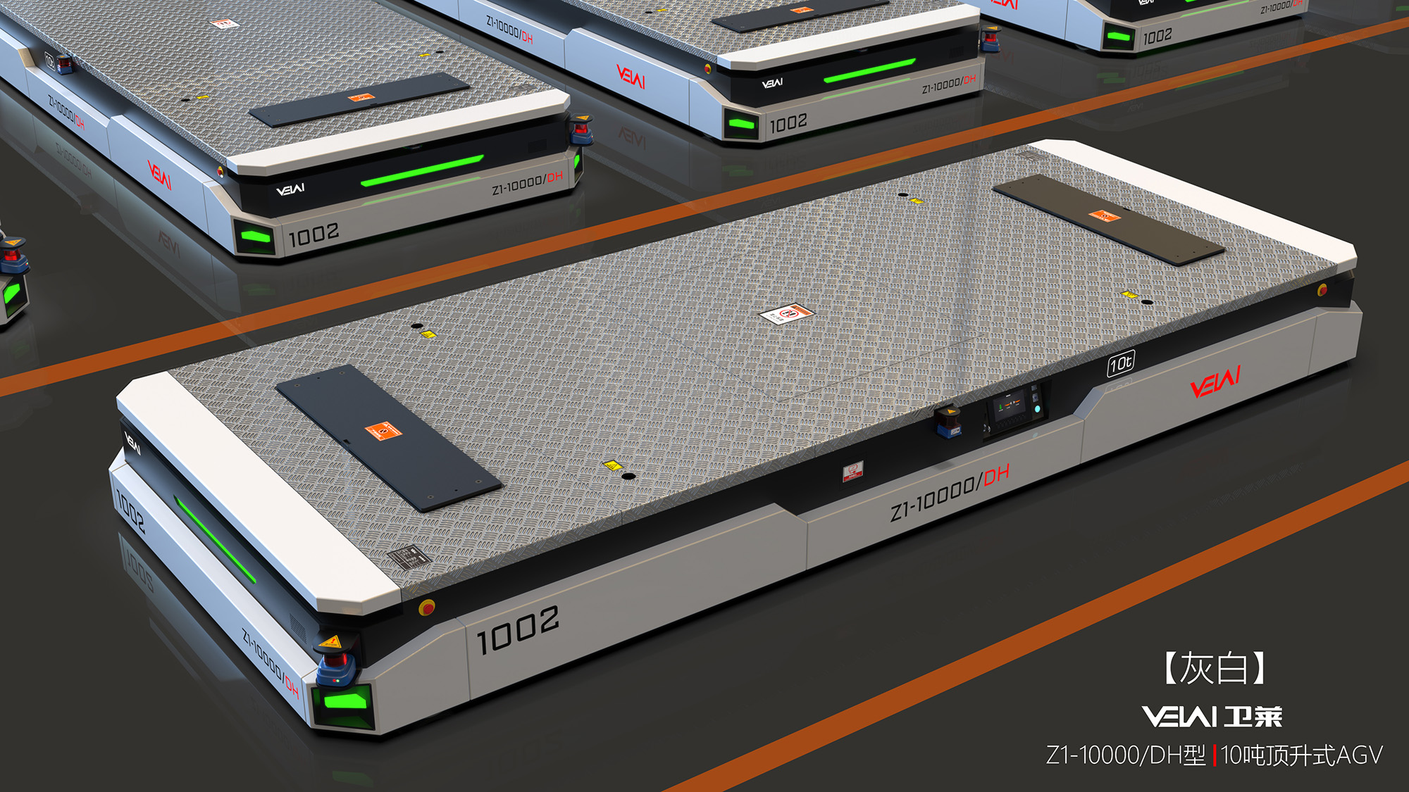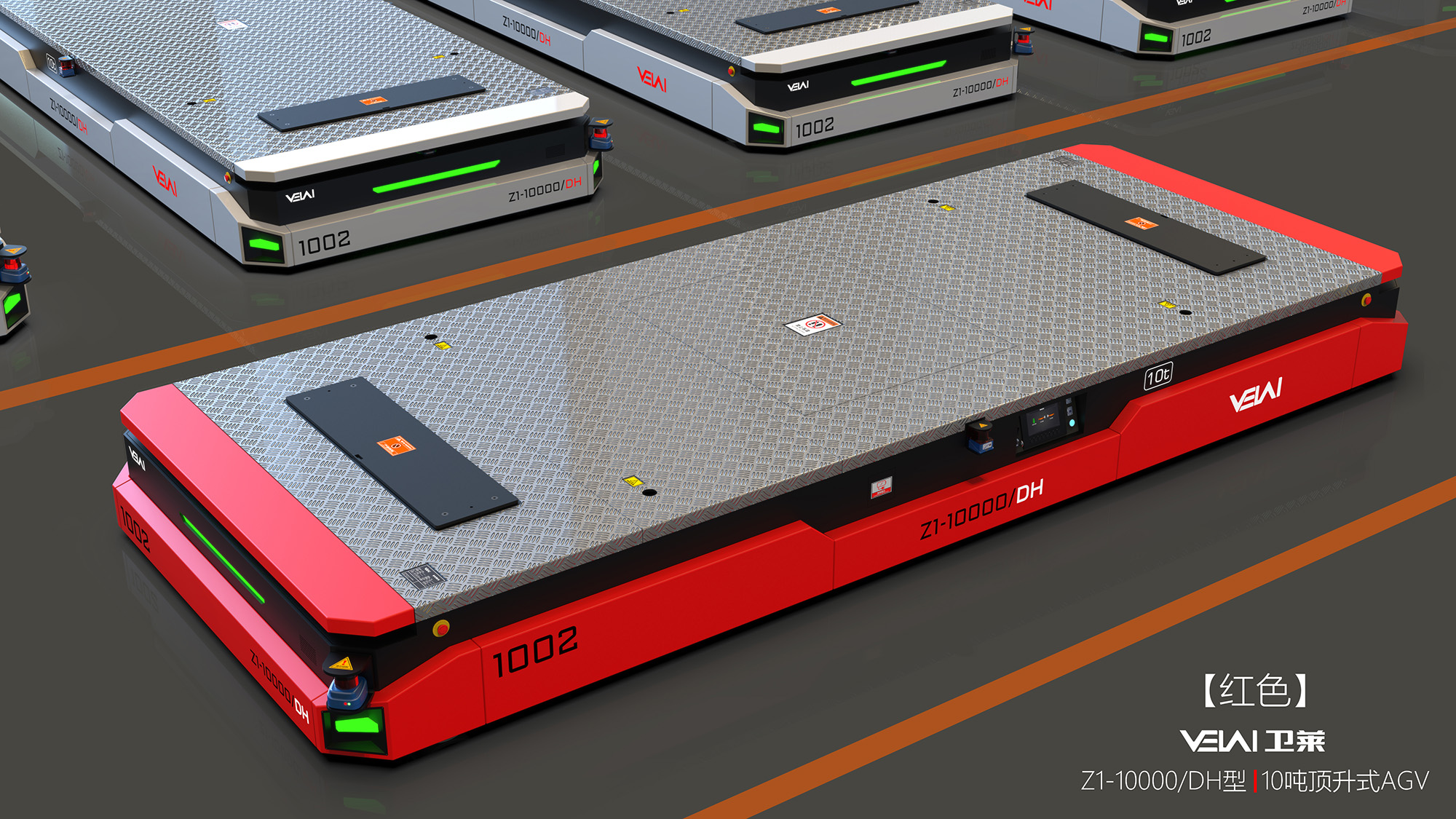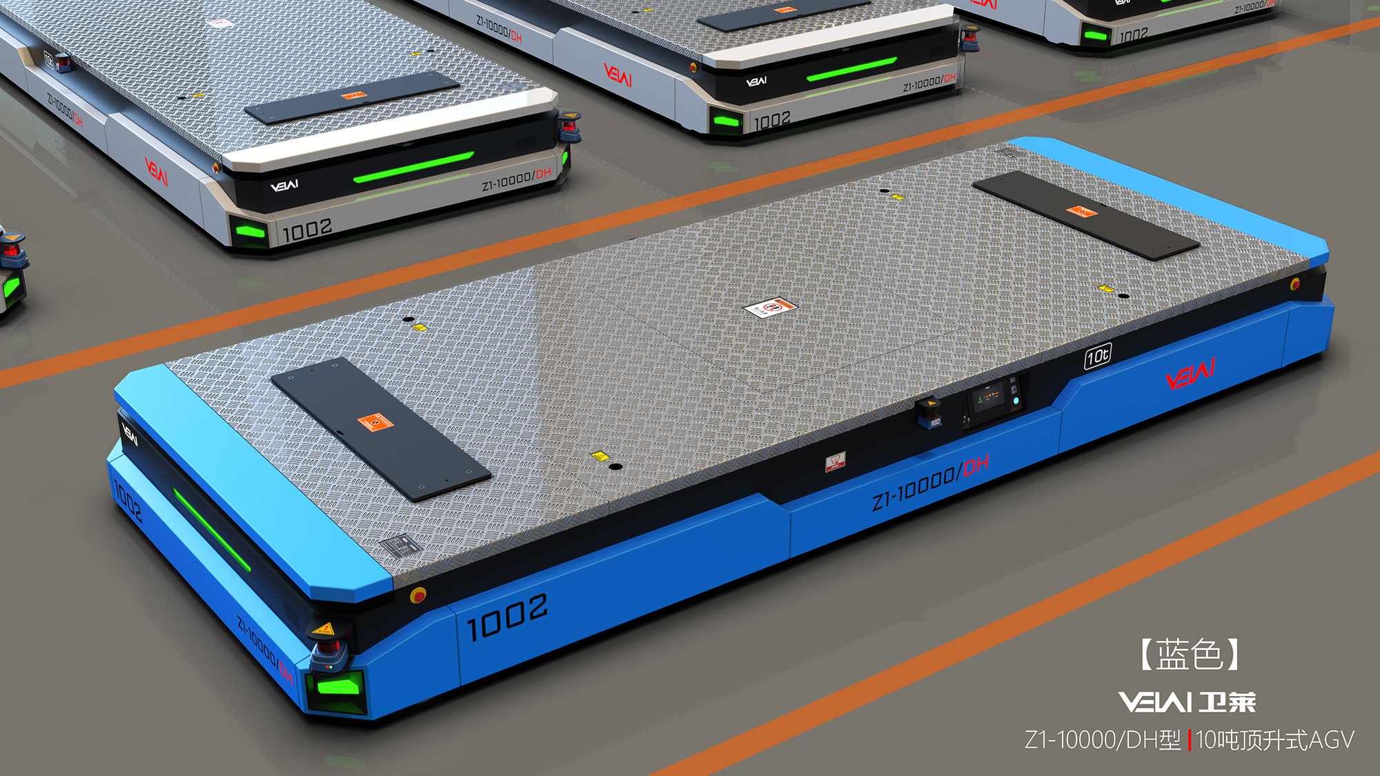 Z1-10t 型重載 AGV,可提供單車 10t 的負(fù)載能力,具有原地轉(zhuǎn)彎和橫移功能,特別適合用于大尺寸、大噸位工 件的運(yùn)輸。可在瀝青、自流平、混凝土地面上運(yùn)行,具有很強(qiáng)的地面條件適應(yīng)能力。由于其自身具有整車自頂升 功能,除可用于直接承載工件外,還可通過鉆入工件架并進(jìn)行自頂升,托舉工件架后間接承載工件。根據(jù)用戶要 求,多 AGV 可實(shí)現(xiàn)同步聯(lián)動(dòng),用于托舉大型部件。采用 PGV+ 二維碼的復(fù)合導(dǎo)航模式全自動(dòng)運(yùn)行,也可以遙控 運(yùn)行。