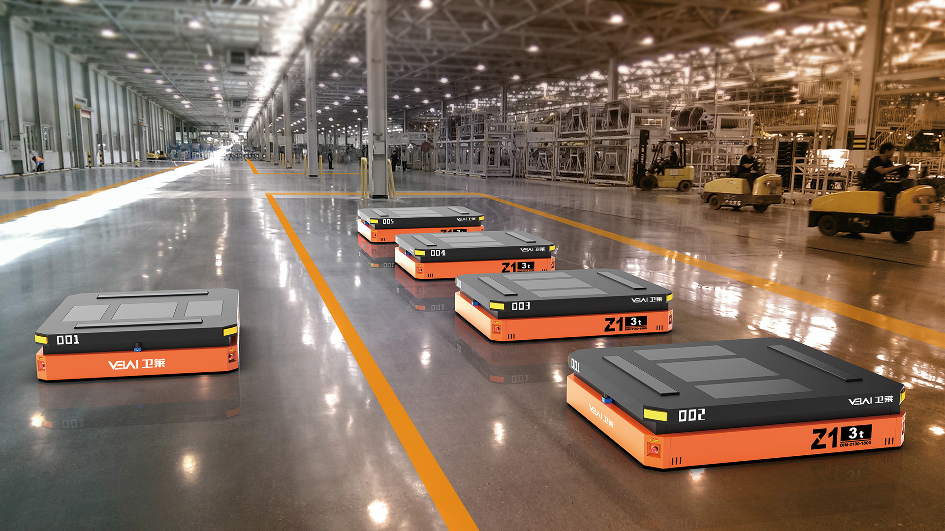 Z1-3t 型重載 AGV,可提供單車 3t 的負(fù)載能力,具有原地轉(zhuǎn)彎和橫移功能,特別適合用于大尺寸、大噸位工件的運輸。可在瀝青、自流平、混凝土地面上運行,具有很強(qiáng)的地面條件適應(yīng)能力。由于其自身具有整車自頂升功能,除可用于直接承載工件外,還可通過鉆入工件架并進(jìn)行自頂升,托舉工件架后間接承載工件。根據(jù)用戶要求,多AGV 可實現(xiàn)同步聯(lián)動,用于托舉大型部件。采用 PGV+ 二維碼的復(fù)合導(dǎo)航模式全自動運行,也可以遙控運行。